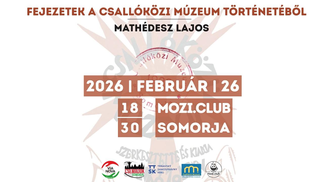 Pontosan száz évvel ezelőtt, 1926-ban fogalmazódott meg először a gondolat, hogy városunkban múzeumot kellene alapítani. Ezt követően, 1927. február 26-án Jankó Zoltán tartott előadást Somorjáról a somorjaiaknak címmel, amelynek köszönhetően végül megalakult a Csallóközi Múzeum. Mathédesz Lajos mai, 18.30-kor kezdődő előadásán a Mozi Clubban a múzeum alapításának rövid történetével ismerkedhetünk meg.