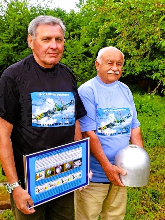 Nakoniec sa zámer – zrealizovať stretnutie dvoch mužov – podaril. Obaja sa na toto stretnutie, ktoré sa uskutočnilo 6. mája tohto roku, náležite pripravili. MUDr. Langáček priniesol okrem krytu vrtule aj starú mapu, aby presne lokalizoval miesto, kam lietadlo dopadlo. Ing. Méry, letecký inžinier, dal vyrobiť tričká s obrázkami lietadla, vo forme tabla vizualizoval príbeh a funkciu nájdeného predmetu z vraku lietadla a na USB kľúč pripravil ďalšie detaily a videá lietadla B-17. Čerešničkou na torte bolo prekvapenie na záver, keď pán Langáček daroval nadšencovi lietadiel a histórie leteckých súbojov kryt vrtuľového náboja. Pre niekoho možno len kus nejakého kovu, pre zberateľa – nadšenca, zároveň profesionála letectva, vec nesmiernej hodnoty. A možno motivácia pre majiteľov ďalších kúskov z vraku lietadla (či iných lietadiel), aby sa o svoj úlovok verejne podelil.“